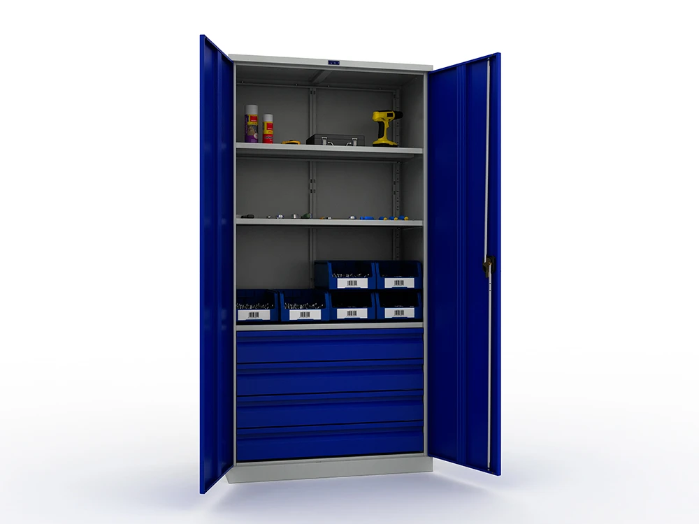 Предназначен для хранения различных инструментов и приспособлений, а так-же запасных частей и расходных материалов в мастерских, цехах и производственных помещениях.Шкафы для инструментов TC-1995 можно индивидуально скомпоновать под свои нужды выбрав необходимые вам комплектующие: перегородки, ящики (большие выдвижные ящики TCF 87x45 или малые выдвижные ящики TCF 42x45) так-же можно выбрать различные полки или перфорированный экран.